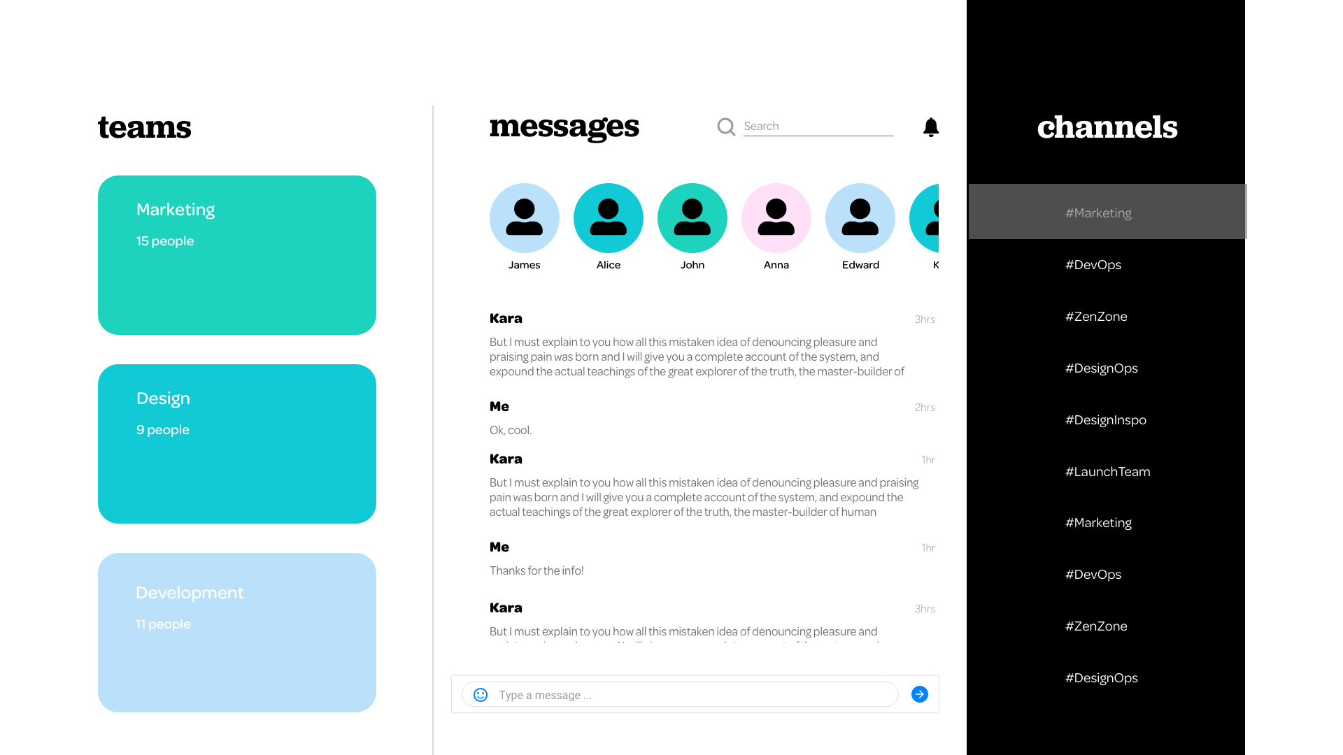 Redesign the contacts experience for a work-related messaging app. As you design, try using Scroll Groups to design a scrollable contacts list.
